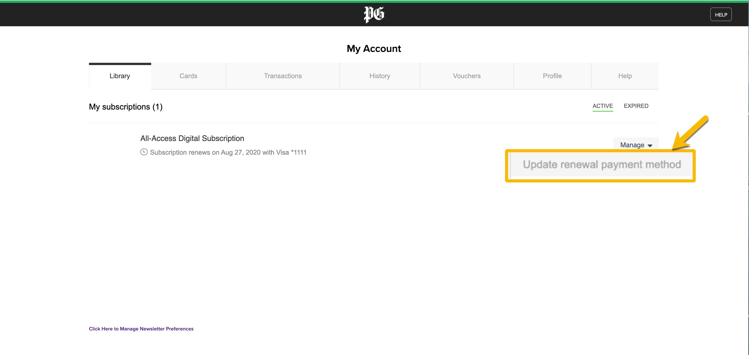 NOTE: Print subscribers will not see any transactions listed in the transactions tab. If you have questions about a transaction you can visit post-gazette.com/subservices, contact us at 1-800-228-NEWS (6397), or click help if you need additional assistance with your account.