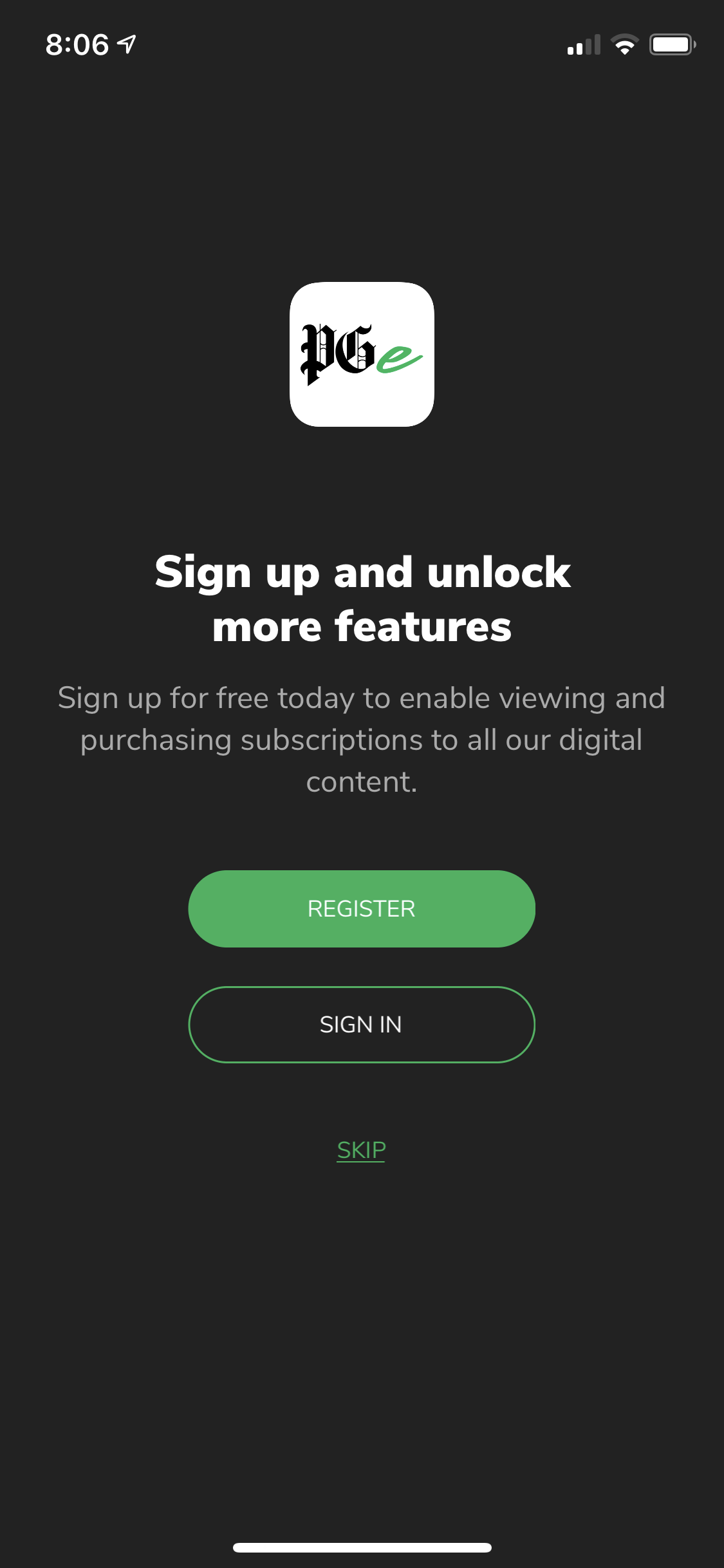 Once you get to the screen that asks if you want to sign in, touch the 'Sign In' button. Click the 'Continue' button on the pop up to continue to the log in screen.